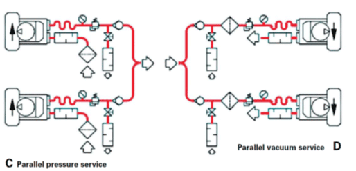 را می توان برای افزایش فشار به شکل سری به یکدیگر متصل نمود در این حالت فشار کل سیستم
